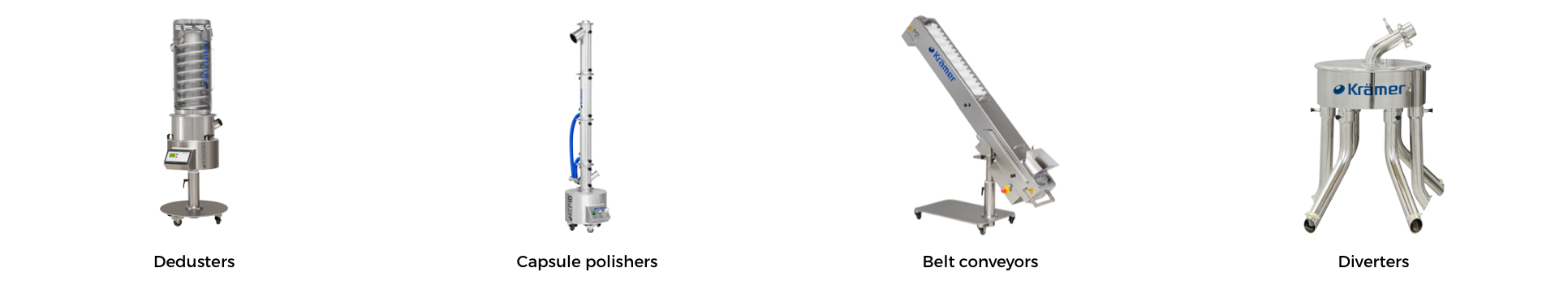 Na uwagę zasługuje fakt, że firma KRÄMER AG oferuje pełen asortyment produktów przeznaczonych do specjalnych zastosowań przy ograniczonej emisji wysokoaktywnych i toksycznych cząstek (poziom OEB5): Wash-in-Place (WIP) i Dust-Tight (DT), czy też rozwiązań dla alternatywnej powierzchni dla części stykających się z produktem, np. Teflon lub uzyskanej przez elektropolerowanie.
